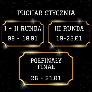 PONIŻEJ ZNAJDZIECIE LINK DO DRABINKI PUCHARU STYCZNIA, ORAZ RAMY CZASOWE DO KIEDY TRZEBA ROZEGRAĆ POSZCZEGÓLNE RUNDY TURNIEJU!