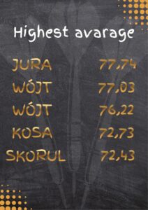 | L.P | ZAWODNIK | SZYBKA LOTKA (1pkt) | 180/171 (2pkt) | HIGH FINISH (3pkt) | PUNKTY |